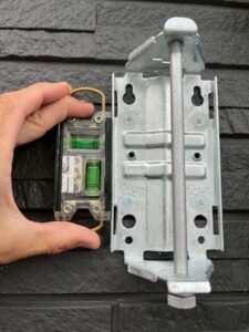 アンテナ設置では、まず専用の取付金具を壁面に固定します🔩