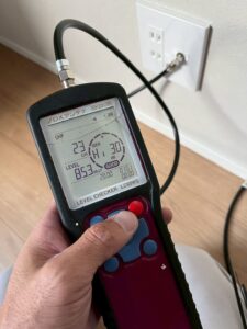 施工前にチェッカーで測定し、電波が安定して受信できる位置を判断します👀